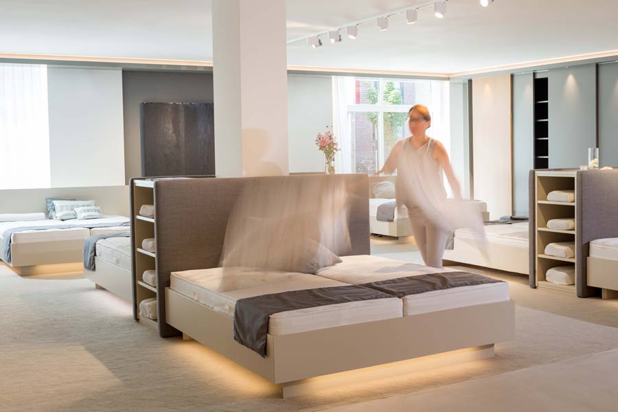 Die ganzheitliche Betrachtung des Schlafumfeldes der Kunden berücksichtigt individuelle Schlafgewohnheiten und eventuell vorhandene Beschwerden. Spezielle Mess-Systeme ermöglichen es, das Bett an die persönlichen Bedürfnisse anzupassen.